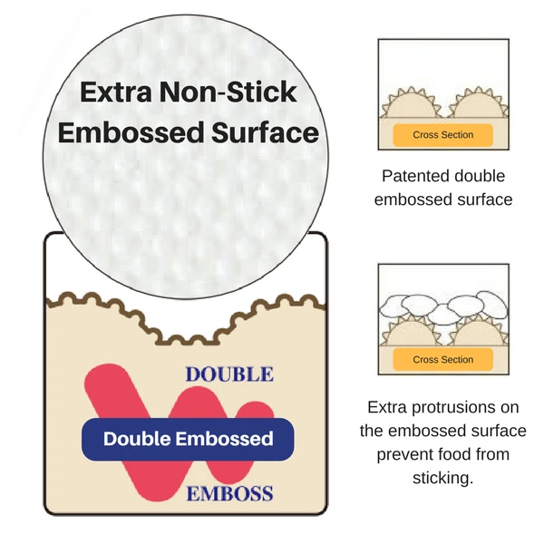 - Non-stick double-embossed surface (Registered utility model) for easy release and cleanup.